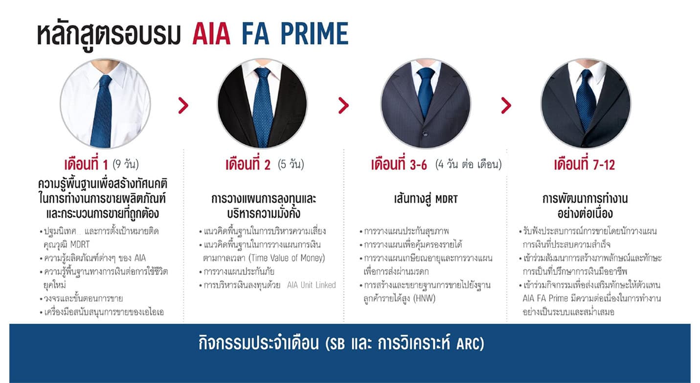 AIA FA หรือ AIA Financial Advisor คือหลักสูตรฝึกอบรมเพื่อช่วยเพิ่มศักยภาพตัวแทนประกันชีวิต สู่การเป็นที่ปรึกษาด้านการประกันชีวิต การเงิน และสุขภาพ ซึ่งการเข้าร่วมกับโครงการนี้ สิ่งที่คุณจะได้คือ